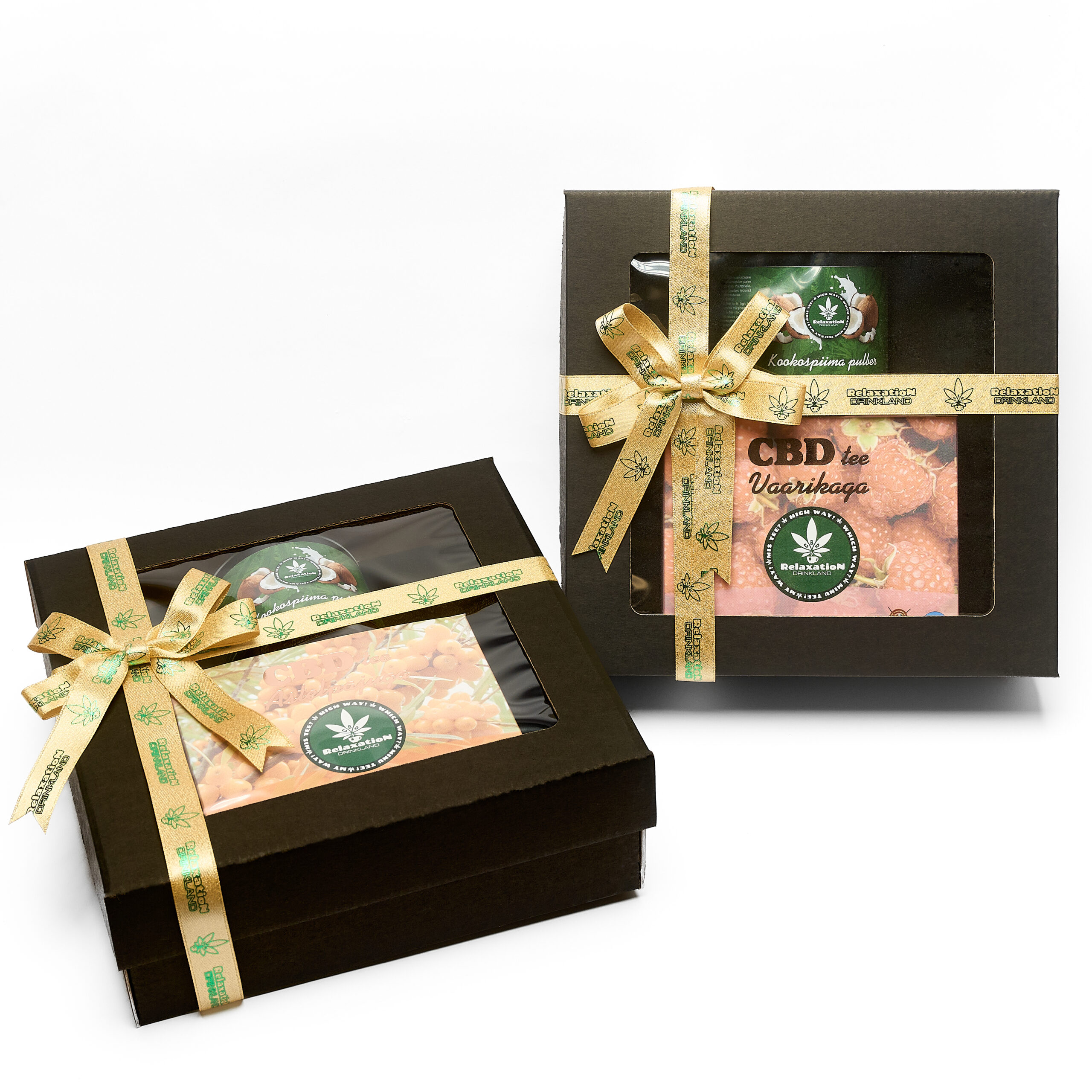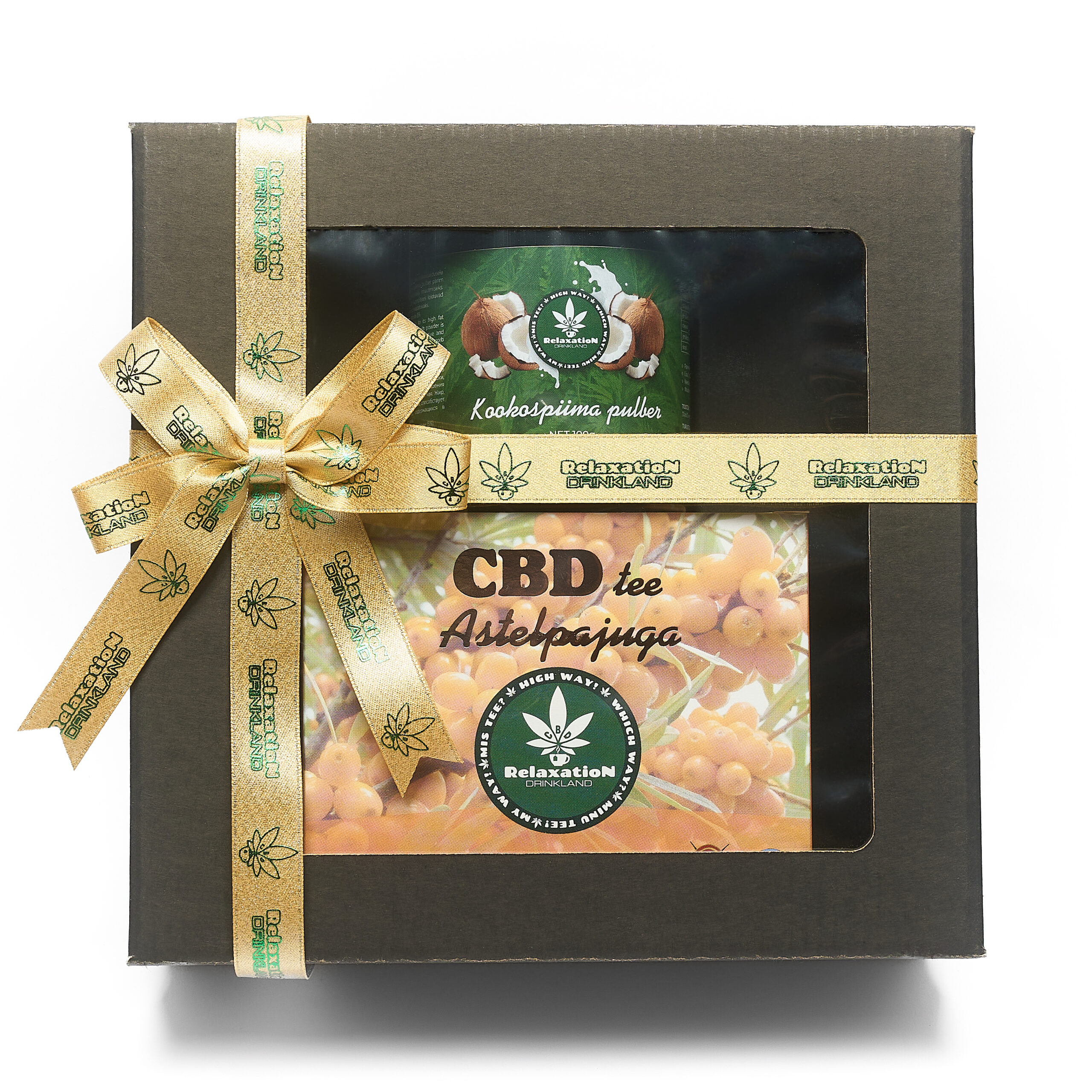 Package contents: Your choice of one 15x CBD hemp tea — raspberry, gooseberry, lemon, caraway, ginger, sea buckthorn, blackcurrant, or Strong Hemp (in biodegradable pyramid bags made from corn fiber) + 100 g coconut milk powder.